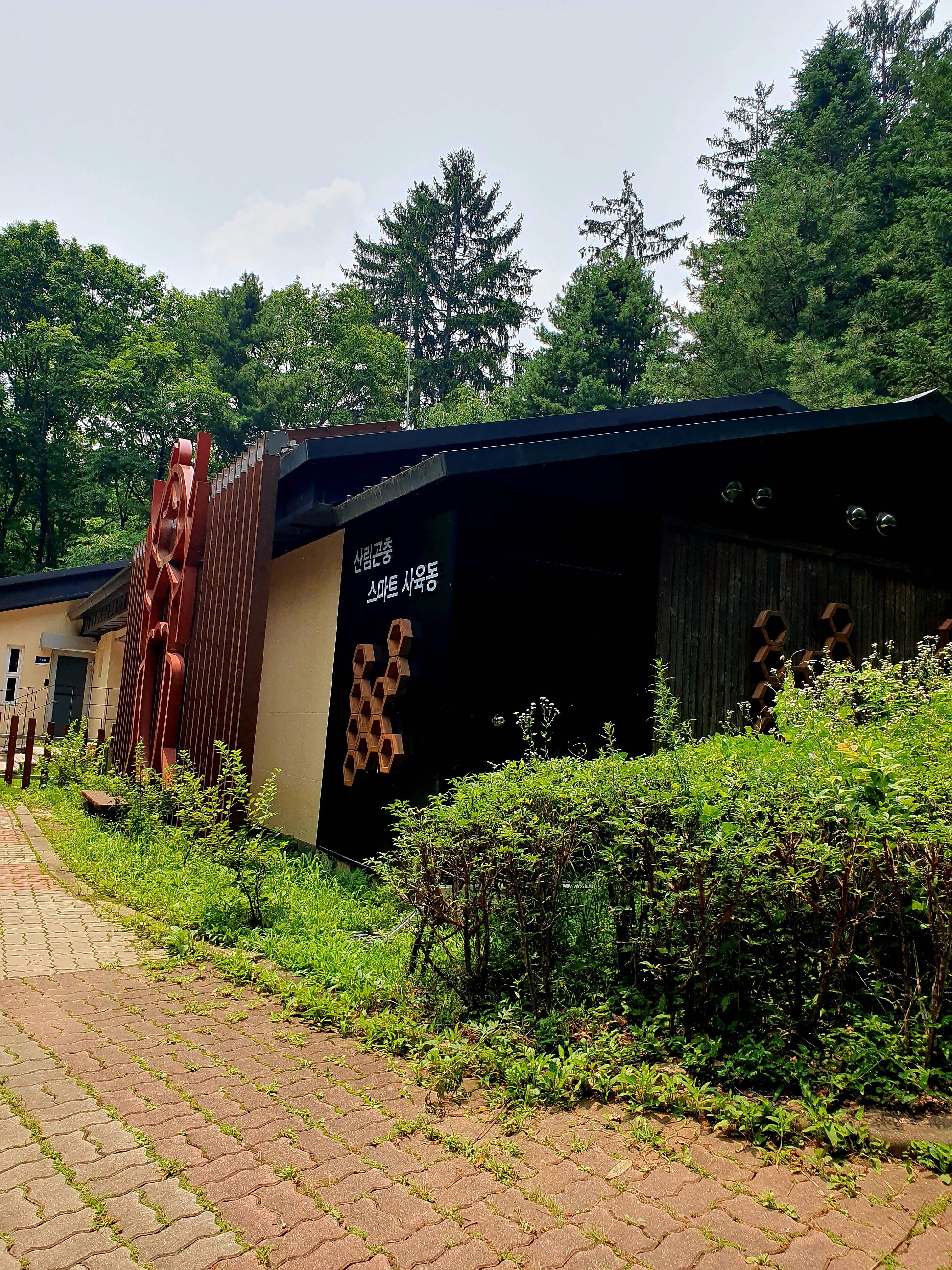 걷다보니 산림곤충 스마트사육동이 보입니다. 일반인은 출입통제구역이라네요. 이곳은 장수하늘소 등 주요 산림곤충에 대한 보전, 복원을 위해 2021년에 건설된 시설로 천적곤충 및 정서곤충과 같은 곤충 산업 자원을 위한 인공사육 연구 시설이랍니다. 리기다소나무 숲길도 보이는군요. 정말 울창한 숲길입니다. 이 길을 걷다 보니 세상 모든 시름이 잊혀 진 듯합니다. 유럽에서 들여온 독일가문비나무도 군락을 이루고 있습니다. 1902년도에 도입 되었다고 하네요. 정원수와 조경수로 사용하며 펄프재 그리고 크리스마스 장식용으로 사용하는 나무로 알려져 있답니다.