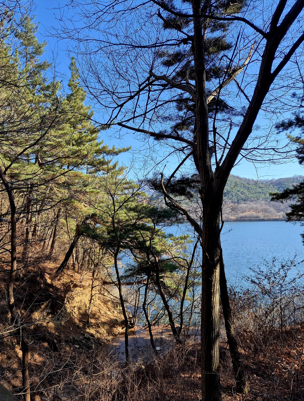 호젓한 저수지 주변의 조그만한 시골 풍경도 아름다움을 연출합니다. 호수에 드리워진 소나무 가지도 멋진 풍경의 한 장면을 이루고 있네요. 조금 걷다 보면 쉬어 갈 수 있는 정자도 보입니다. 여기서 조용히 ‘물멍’때리기 좋습니다. 그야말로 고요한 아침 호수 모습입니다. 조용히 휴식을 취 할 수 있는 벤취도 보입니다. 조릿대라는 산죽 길을 걷다 보면 소나무 숲길 데크로드가 이어지면서 약간의 오르막 계단도 있습니다. 계단을 내려오면 물을 가두고 빼는 제방 수문이 보이네요. 겨울철 갈수기인데도 물이 가득합니다. 제방 밑으로는 오토 캠핑장도 보입니다. 겨울 철새인 청둥오리와 흰빰검둥오리도 월동을 하러 멀리서 날아왔네요. 저수지 아랫마을이 원평이라는 동네입니다. 이곳의 배도 유명하지요.